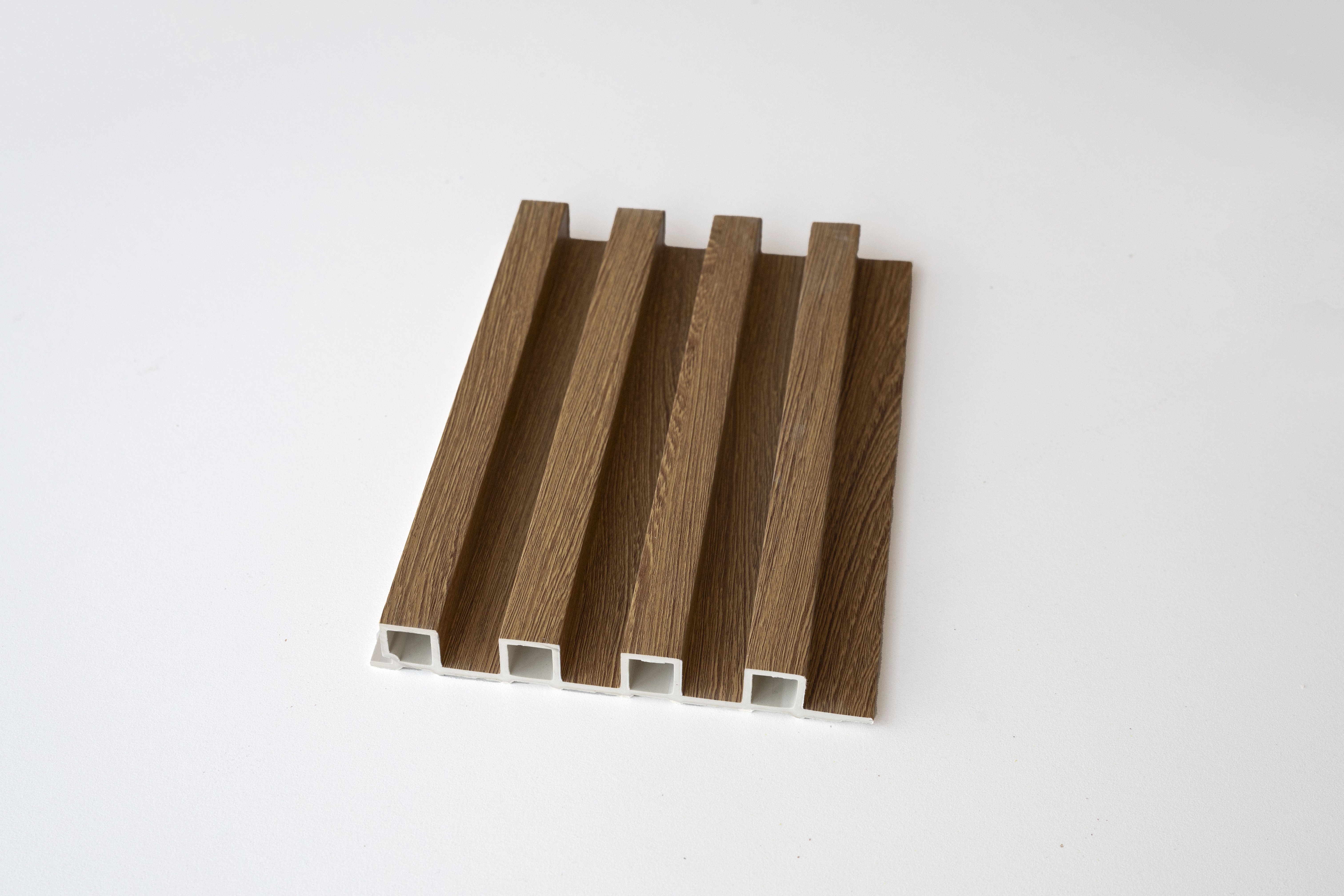 Fabricada en WPC (Wood Plastic Composite), combina diseño, durabilidad y facilidad de instalación, ofreciendo un acabado continuo sin mantenimiento.